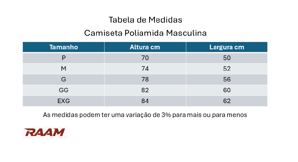 Produzido em 100% Poliéster – Tecido respirável, mantendo seco e confortável, excelente para atividades físicas. – Proteção UV, perfeita para treinos ao ar livre – Leve que permite todos os movimentos. – Resistente a deformação, ótima para uso diário. – Cores duradouras. – Excelente conforto para treinos longos e pesados em todos os esportes